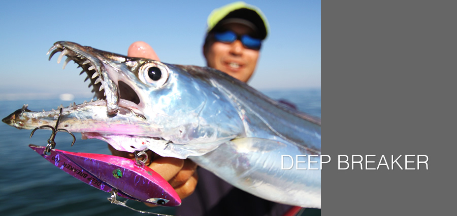 使用方法は単純明快、落として巻くだけ。一般的なバイブは投げて巻くだけのヨコの釣り … 「DEEP BREAKER」は落として巻くタテの釣り。計算され尽くしたそのフォルムは、ジギングバイブ専用の特殊設計。フォール時の糸ガラミを極力抑え、リトリーブ直後から動くようレスポンスを追求。立ち上がりの良いアクションを得ることで着底直後、バイトレンジ到達直後からチャンスが生まれます。