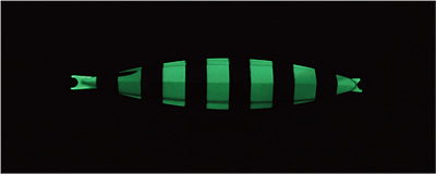 そして極めつけは『P.J.RIDE』にしかできない動きであり開発スタッフの間では〝レベルスライド〟と呼ばれる唯一無二のフォールアクションこそがこのジグの真骨頂である。これも水中アクション動画をご覧いただければ解るのだが、通常ジグのフォールアクションは複雑な動きをするが「どこか予測ができてしまう複雑な動き」なのだ。野球に例えればカーブやスライダー的な変化である。しかし、『P.J.RIDE』の〝レベルスライド〟は予測不可能なアクション変化が一度のフォールで複数回発生し、それこそ前述の例えで言えばナックルボール的(サッカーでは無回転シュート)な変化が誰でも簡単に繰り出すことができるのだ。フォール方向がクイックかつ滑らかに変化する動きはフィッシュイーターの本能を刺激しバイトまで持ち込むチカラを持っている。REALS独自のセンタープレートシステム構造だからこそ出せるアクションのひとつであることは間違いない。
