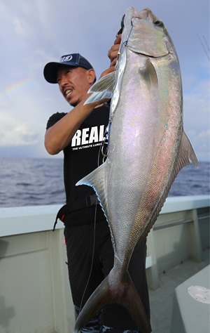 初期のテスト釣行は宮古島のカンパチでデータを収集。水深250m前後を『Spec-ZERO』300g、PE3号&リーダー14号をメインに実釣。アクションはあくまでスローピッチによるフォールで主にロングフォールを多用。あえて潮の抵抗を受けやすい太めのラインセッティングと、しっかりアクションしなければ喰ってこないターゲットを選び徹底的にフィールドテストを行った。抵抗の小さいライトラインで、極端に言えば止めていても喰ってくるアカムツ等ではなく、あくまでジグの横向きアクションに反応してくるターゲットで性能を追求。微調整を繰り返し結果的には宮古島のカンパチジギングにおいて最高の釣果を叩き出すことに成功した。